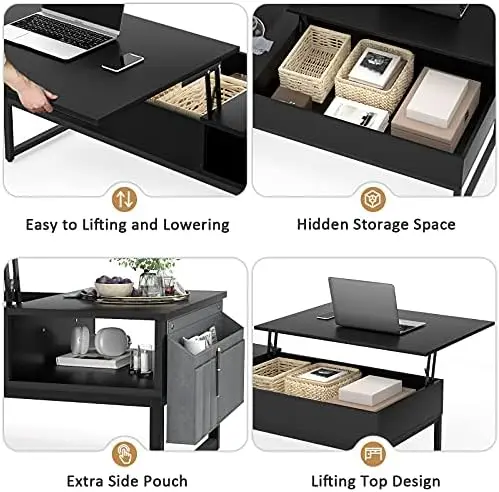 "Top Coffee Table with Storage, Wood Lifting Top Central Table Metal Frame, 43.3" Lift Tabletop Tea Table with Side Pouch, Co Tea" * Buy Now With Free Shipping Just For $123
