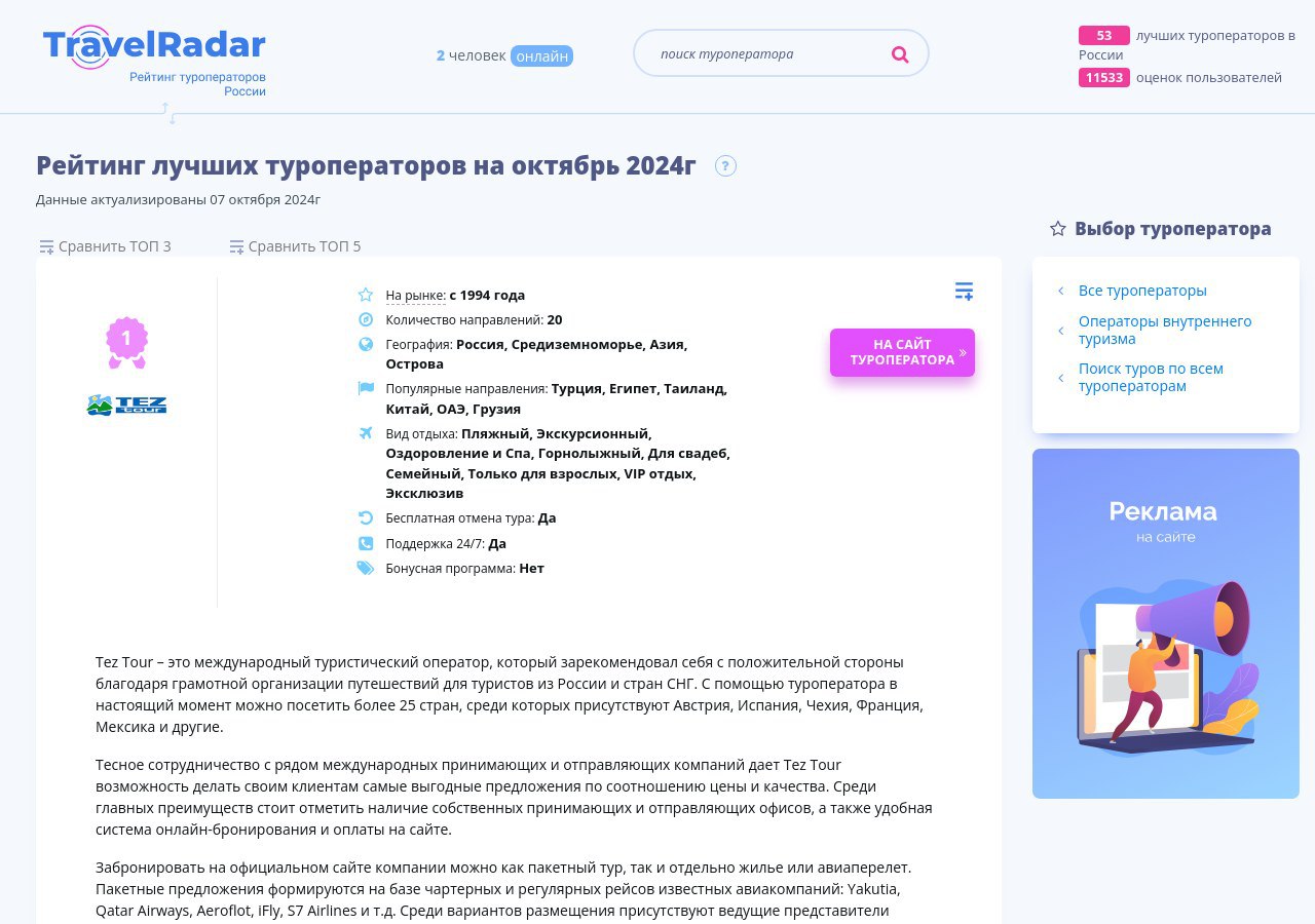 Топ лучших туроператоров