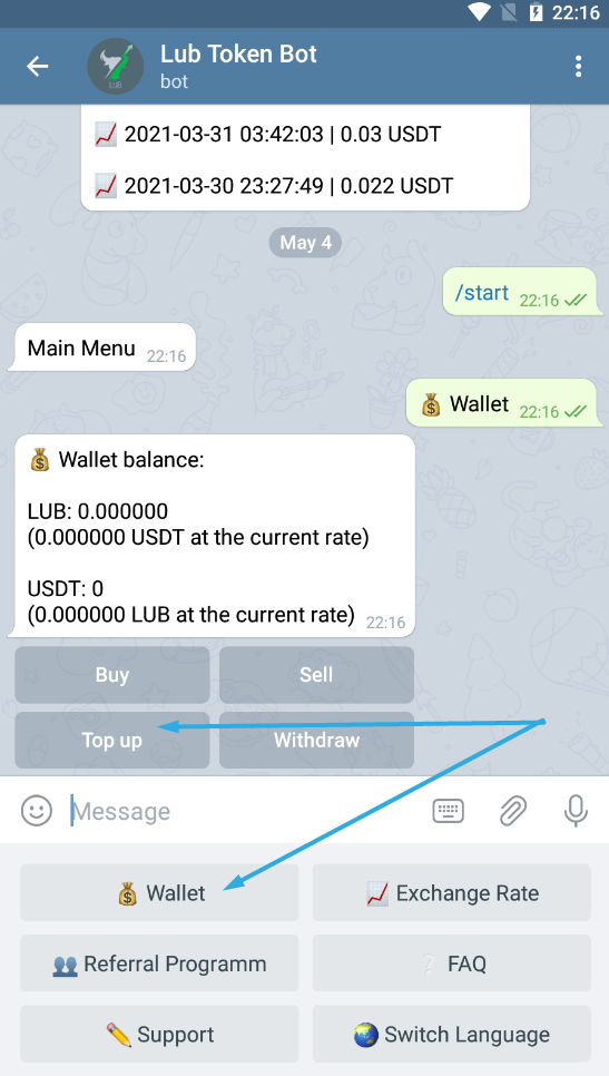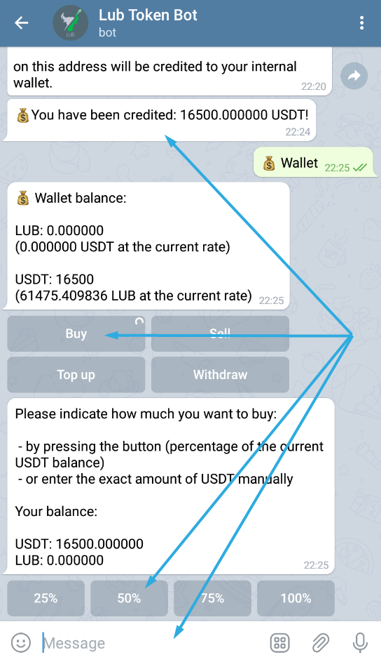 Top up the LUB Token Bot and buy LUB