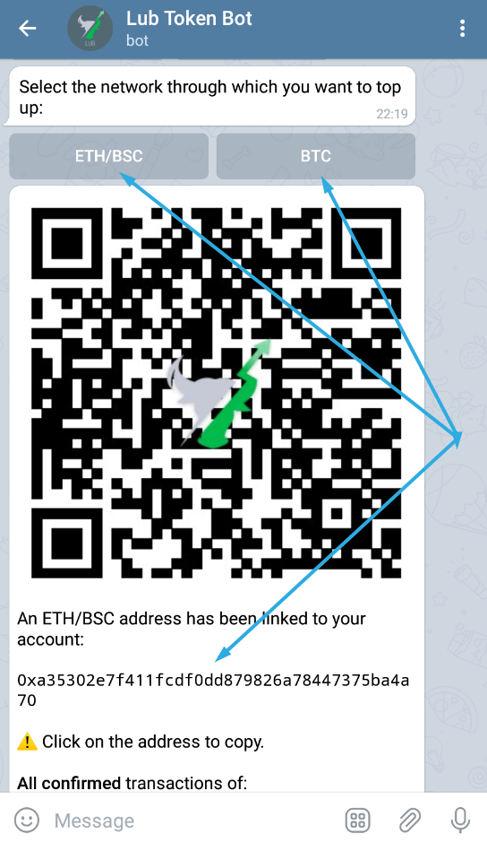 7. You will then receive a notification from the Lub Token Bot with information about the deposit