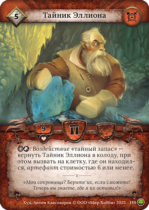 Самая худшая нейтральная карта, а может и всего выпуска - Тайник Эллиона (оценка стремится к 0 из 10). Так и так артефакты не в особом почете на драфте, так это "седьмое чудо" света находится в самом конце списка доски почета. В целом, если была бы номинация "ЛАСТ ПИК", то Тайник Эллиона с большим отрывом выигрывала бы у Вайла или у Орланда Блума. Если увидите данную карту, даже не думайте ее пикать, все равно последним пиком вам ее передадут.