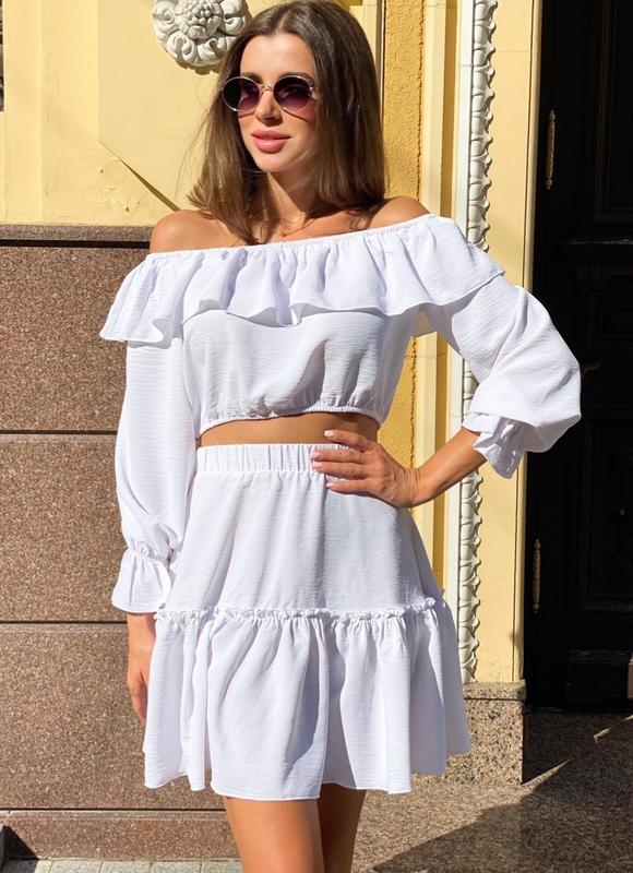 Юбка и топ, представляющие единый костюм, невероятно популярны в этом сезоне . Верх и низ такого комплекта выполняется из одинаковой ткани в одной или контрастной цветовых гаммах .