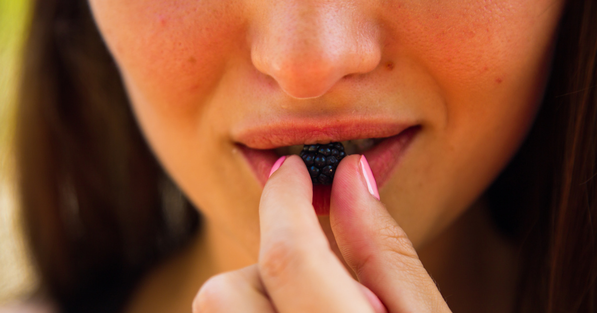 Topless teen biting her finger