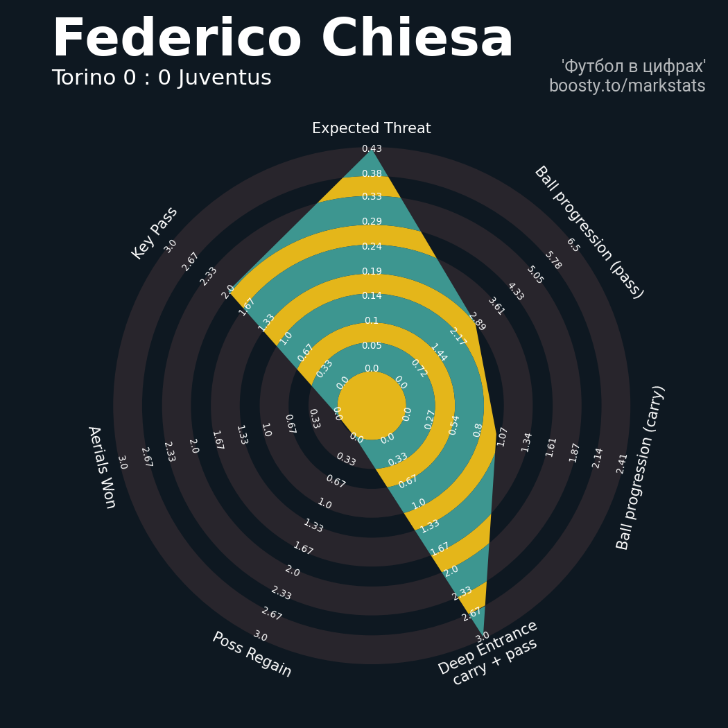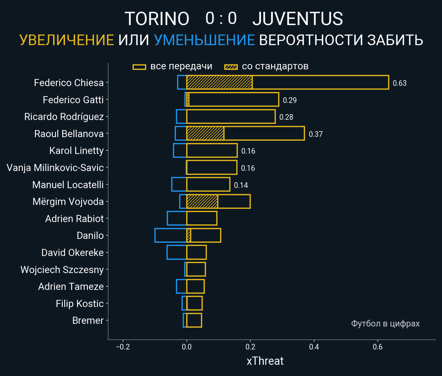 0.43 очка xT (+0.21 со стандартов)