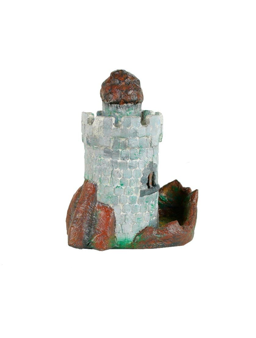 Per la parte davanti all'entrata della torre dovetti cercare qualcosa di solido che potesse reggere eventuali urti dati dallo spostare di qua e di là la torre. L'unica soluzione che mi venne in mente fu aggiungere un pezzo di legno ritagliato su misura. Lo incollai con la colla vinilica e, per fissarlo meglio alla torre, lo rivestii più volte sia sopra che sotto con la carta di giornale. Dopodiché feci altri pezzi di terra come per il V passo per fermare la caduta dei dadi.