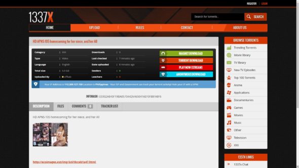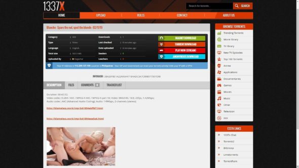 Одна вещь, вы всегда можете гарантировать в жизни является то, что г-н порно Geek найти лучшие сайты торрент там для его верных последователей, чтобы проверить и использовать. Сегодняшний день не исключение, и этот сайт, по меньшей мере, звездный. Смотрите, 1337x.to – Все для того, чтобы все было легко и просто: Вам предоставляется список доступных загрузок для взрослых, как только вы попадаете в категорию для взрослых, и по умолчанию они сортируются по дате представления. Хотите профессиональный совет от г-Porn Geek? Разбейте опцию выпадающего меню сортировки по сеялкам и посмотрите, что люди смотрят больше всего. Вот как вы находите сливки урожая в порно мире!