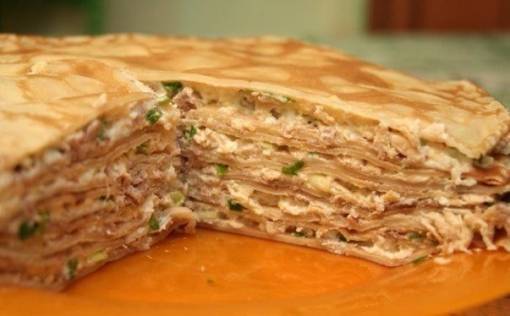 Блинный торт «Попадьин пирог» Блинница, блинный торт - это блинчатый пирог с различными начинками . Например, из ливера, грибной, творожной или из сырого яйца и масла .
