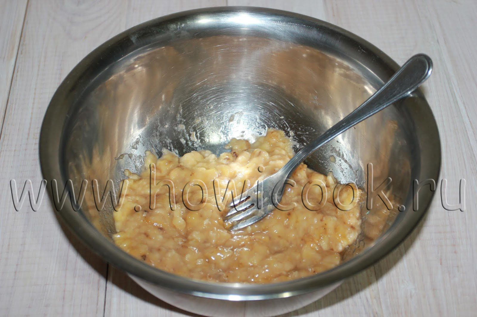 Рецепт «Торт "Колибри"»: Измельчить орехи, бананы и ананасы с соком блендером до однородной консистенции . В чашке смешайте муку с содой, солью, сахаром и корицей . В смесь бананов с ананасами . . .