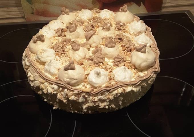 130 г арахиса (но можно взять любые, например кешью или миндаль), 5 белков от яиц, 320 г сахара, 1 пакетик ванильного сахара ., 215 г сливочного масла, 190 г сахара, 1 яйцо, 125 г молока, 1 ст . л . коньяка (я делала без него) . Шаг 1/10 . Шаг 1/10 .