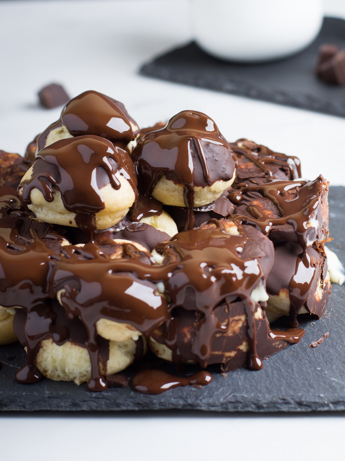 Помню как-то в Шоколаднице увидел торт с профитролями внутри, идея была потрясающая, только вот вкус так себе . Поэтому я четко себе решил, что рано или поздно сделаю что-то подобное .