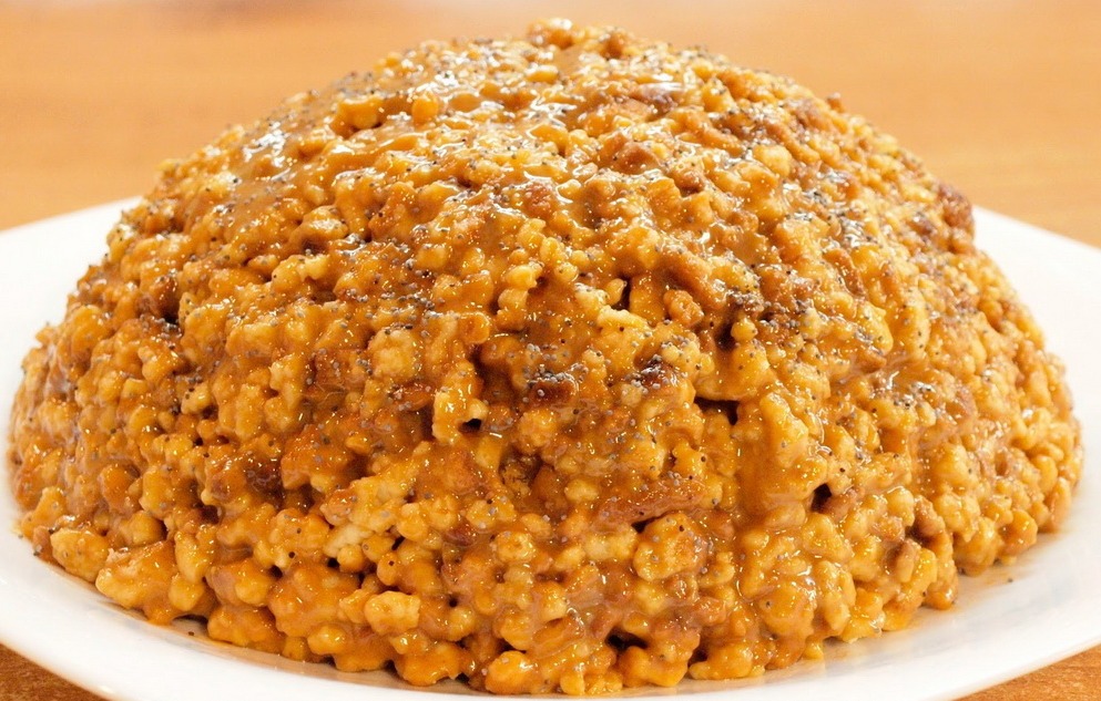 - Переложите массу на плоскую тарелку в виде горочки и уберите в холодильник на 2-3 часа. Торт "Муравейник" готов. Украсить десерт можно маком, орехами, шоколадом или любым другим декором по вкусу.