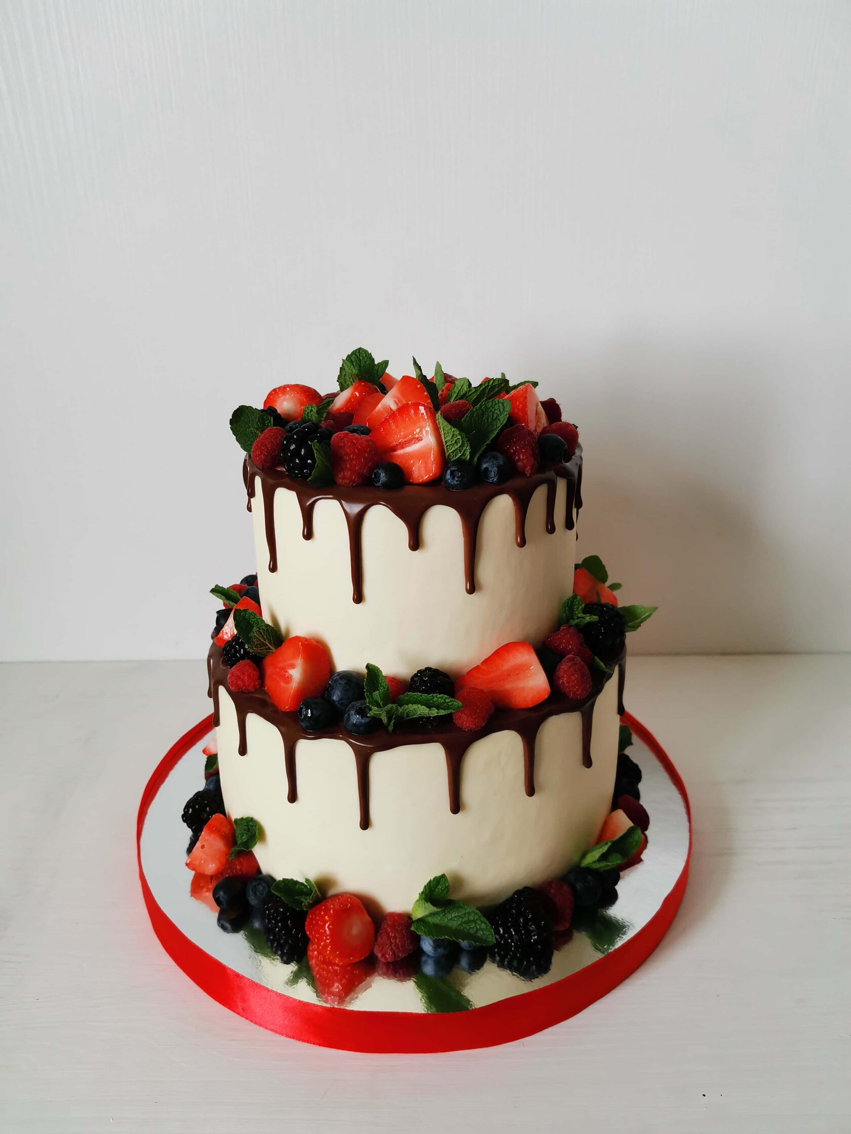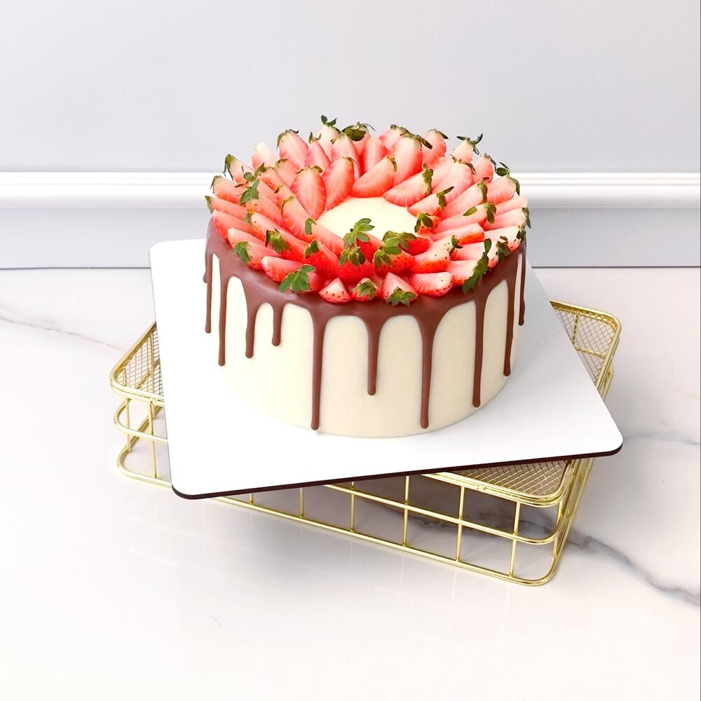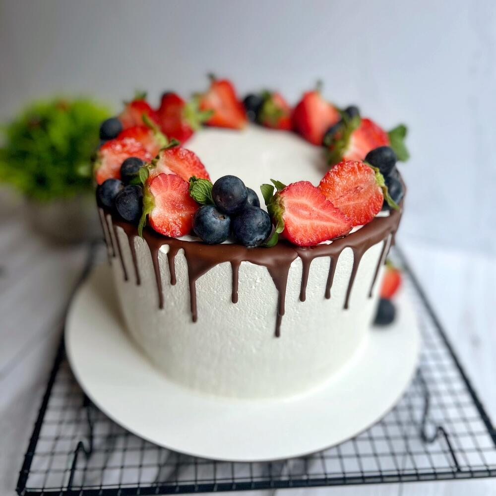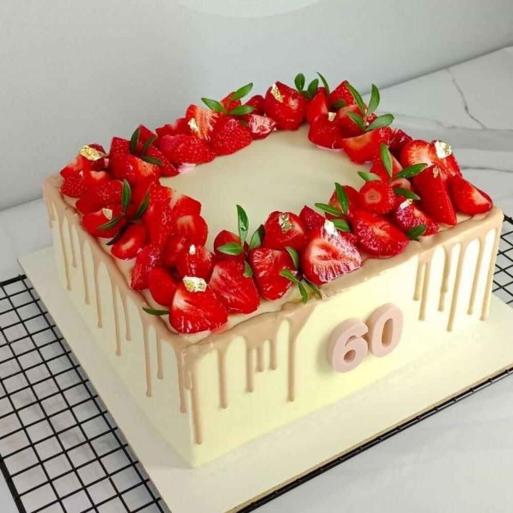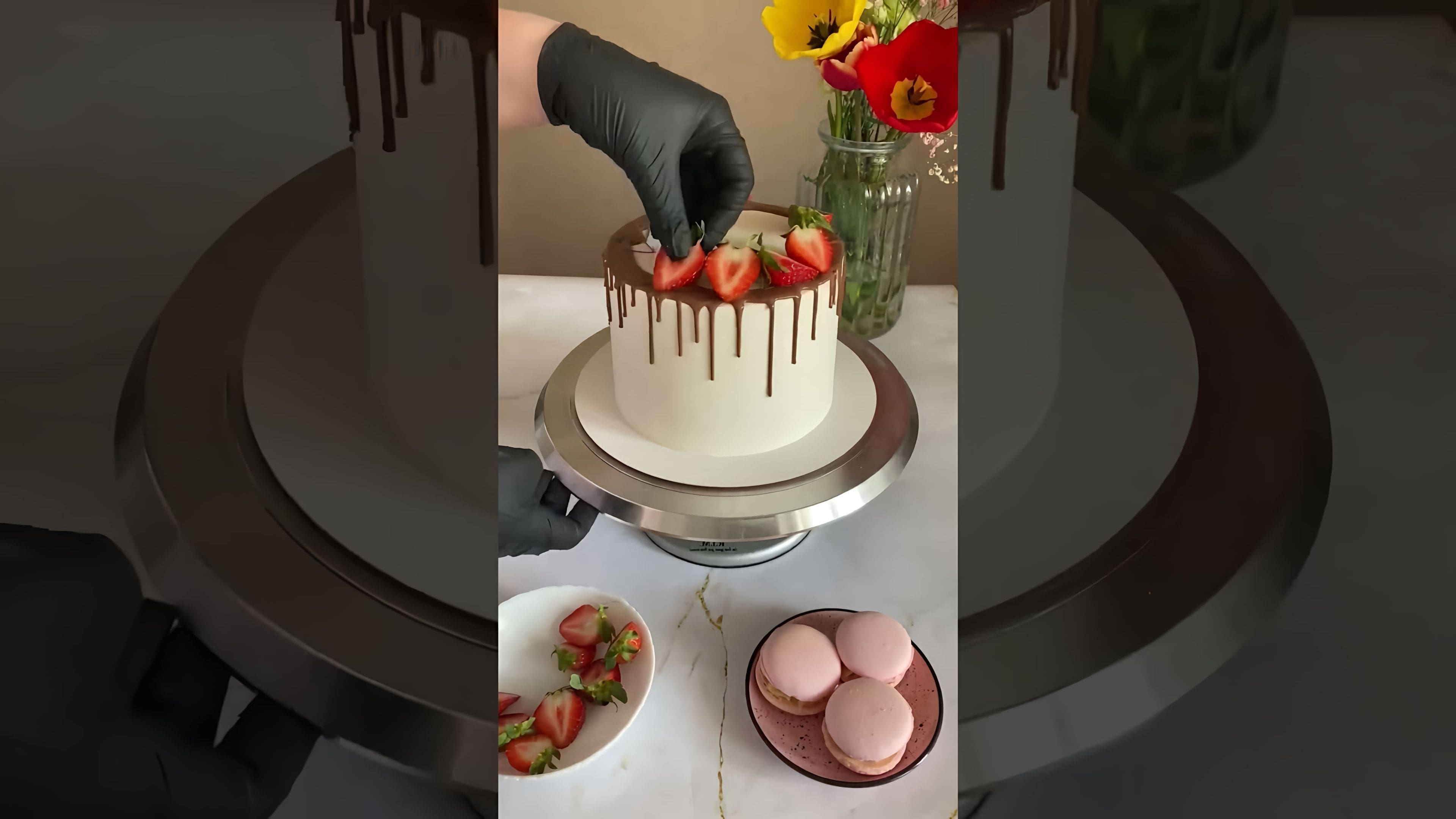 Торт с подтеками и клубникой