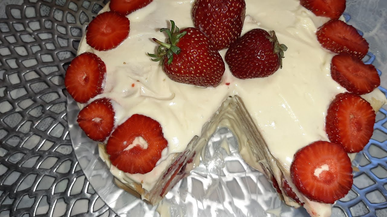 Торт со сгущенкой и клубникой