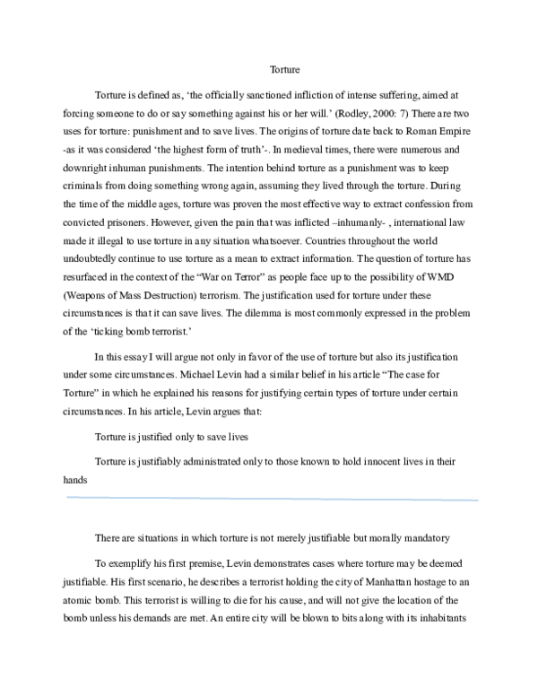 Is Torture Ever Acceptable? Essay - 856 Words | Bartleby