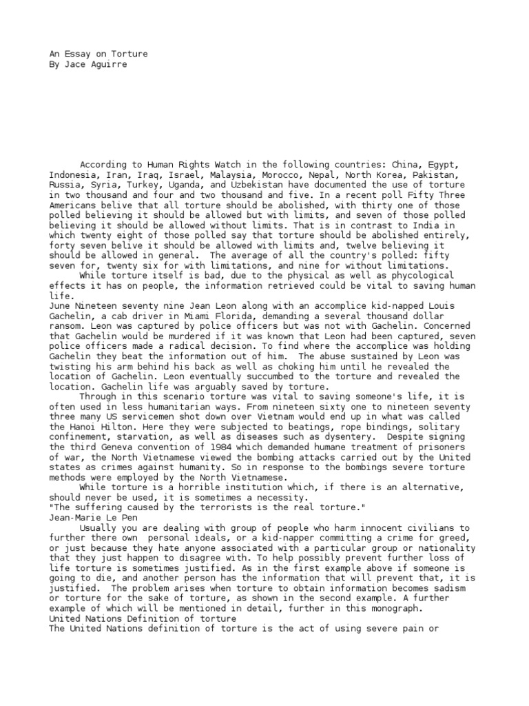 Persuasive Essay On Torture - 955 Words | Internet Public . . .