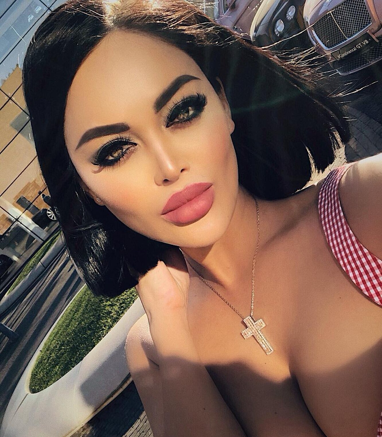 Busty beauty strips