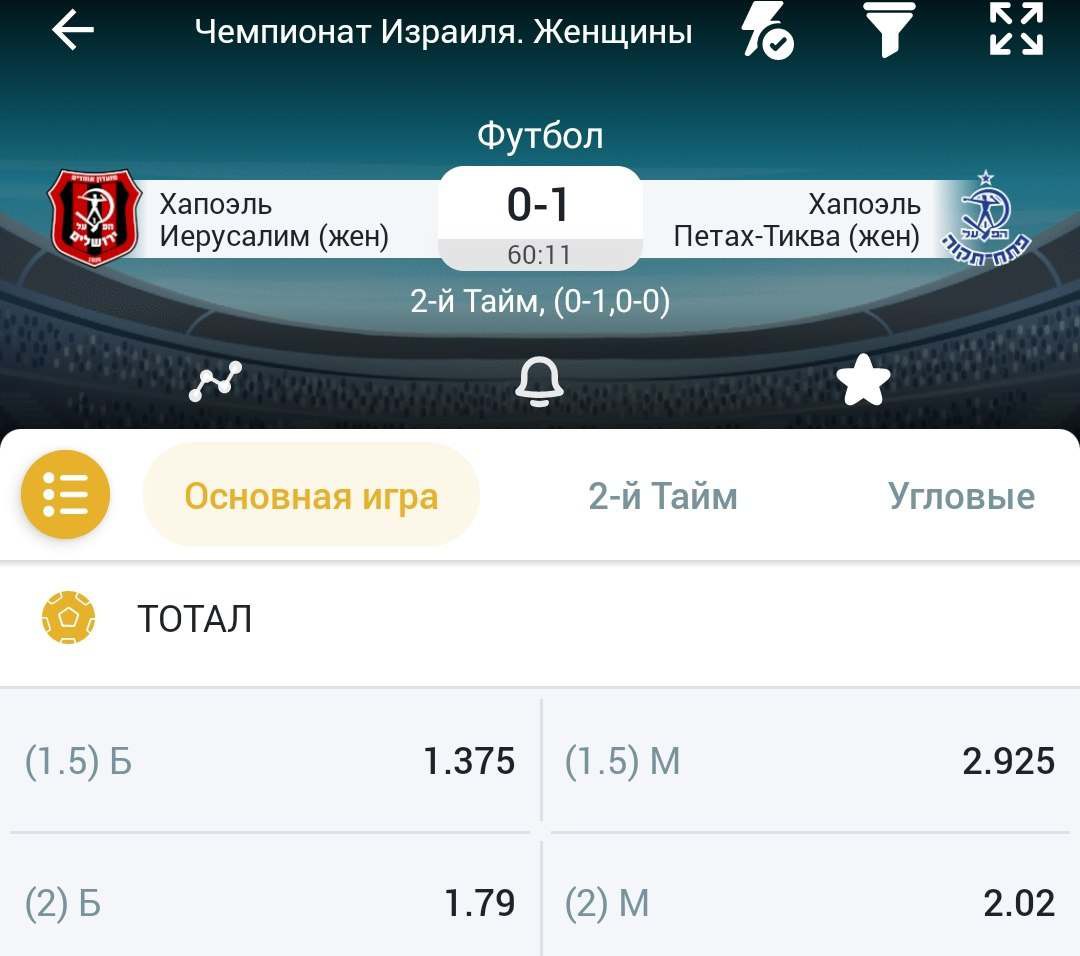 Тотал команда 1 больше 1