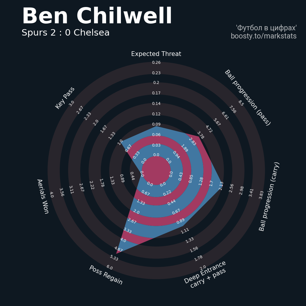 13 успешных передач из 23 попыток (1 под удар, 1 с продвижением, 3 на трети соперника)