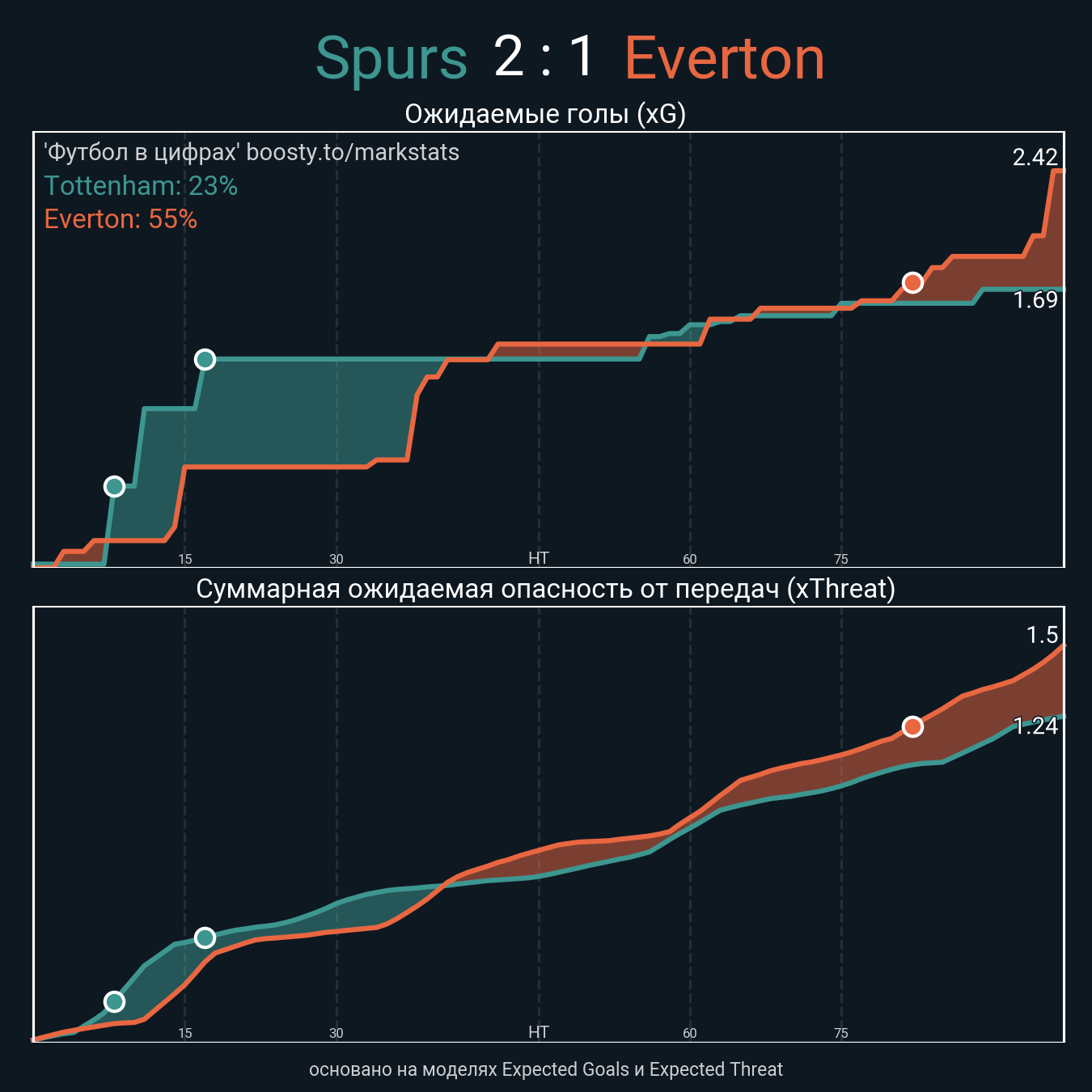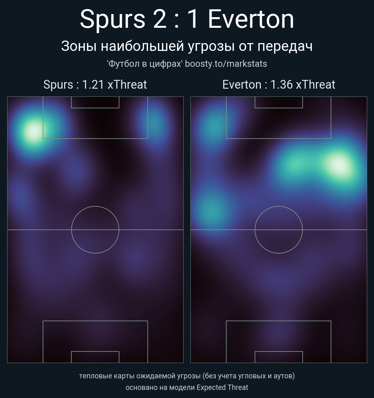 xThreat без учета угловых: 1.21 - 1.36