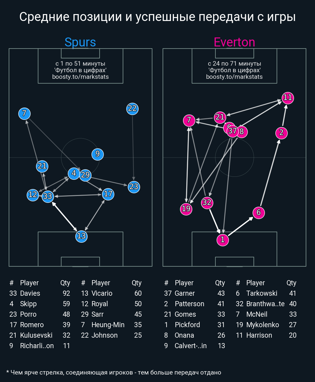 81 успешных передач из 93 попыток (4 с продвижением, 1 на трети соперника)