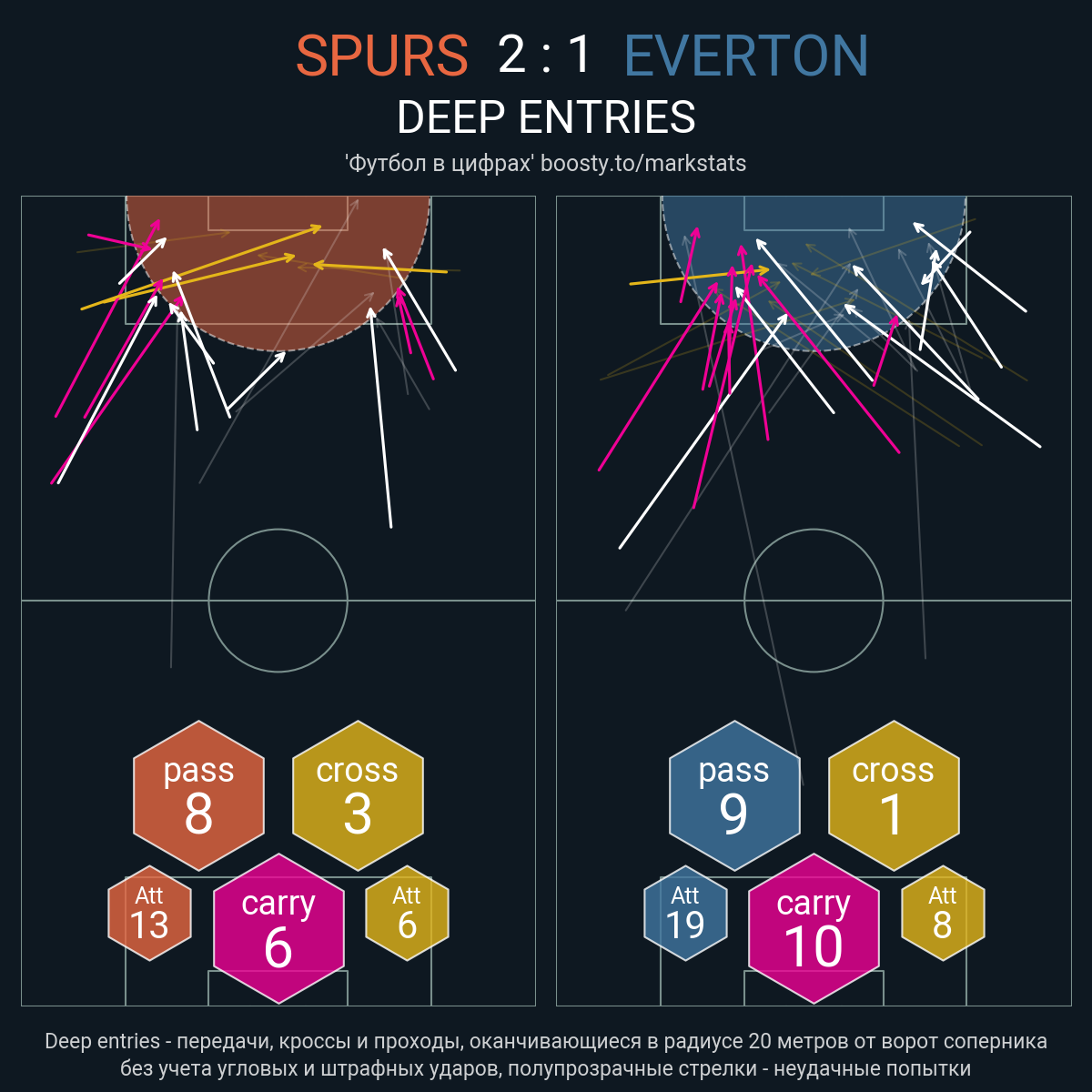 14 успешных передач из 20 попыток (1 под удар, 3 с продвижением, 9 на трети соперника)