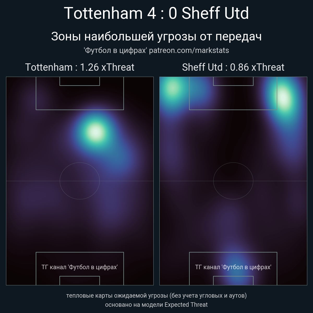 ▪ xThreat без учета угловых: 1.26 - 0.86