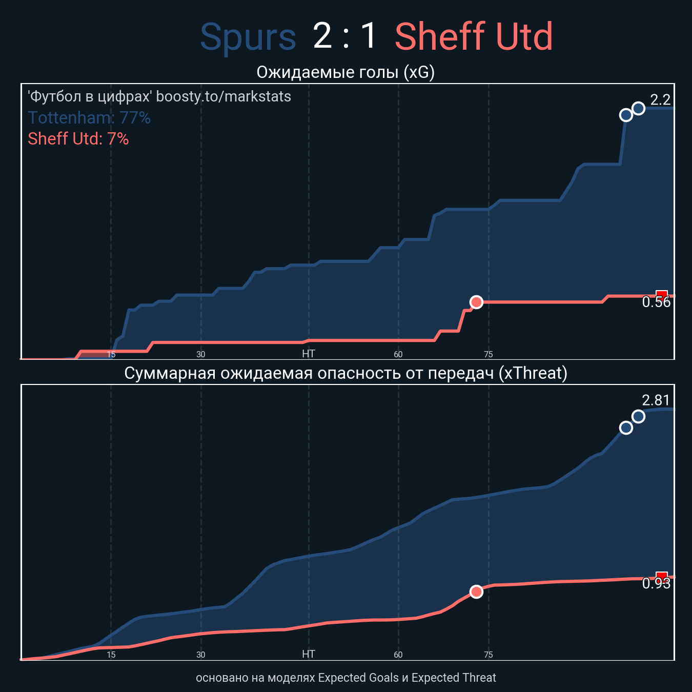 Ожидаемые голы (NPxG): 2.2 - 0.56