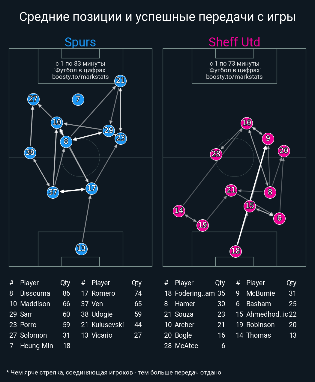 60 успешных передач из 77 попыток (4 под удар, 11 с продвижением, 30 на трети соперника)