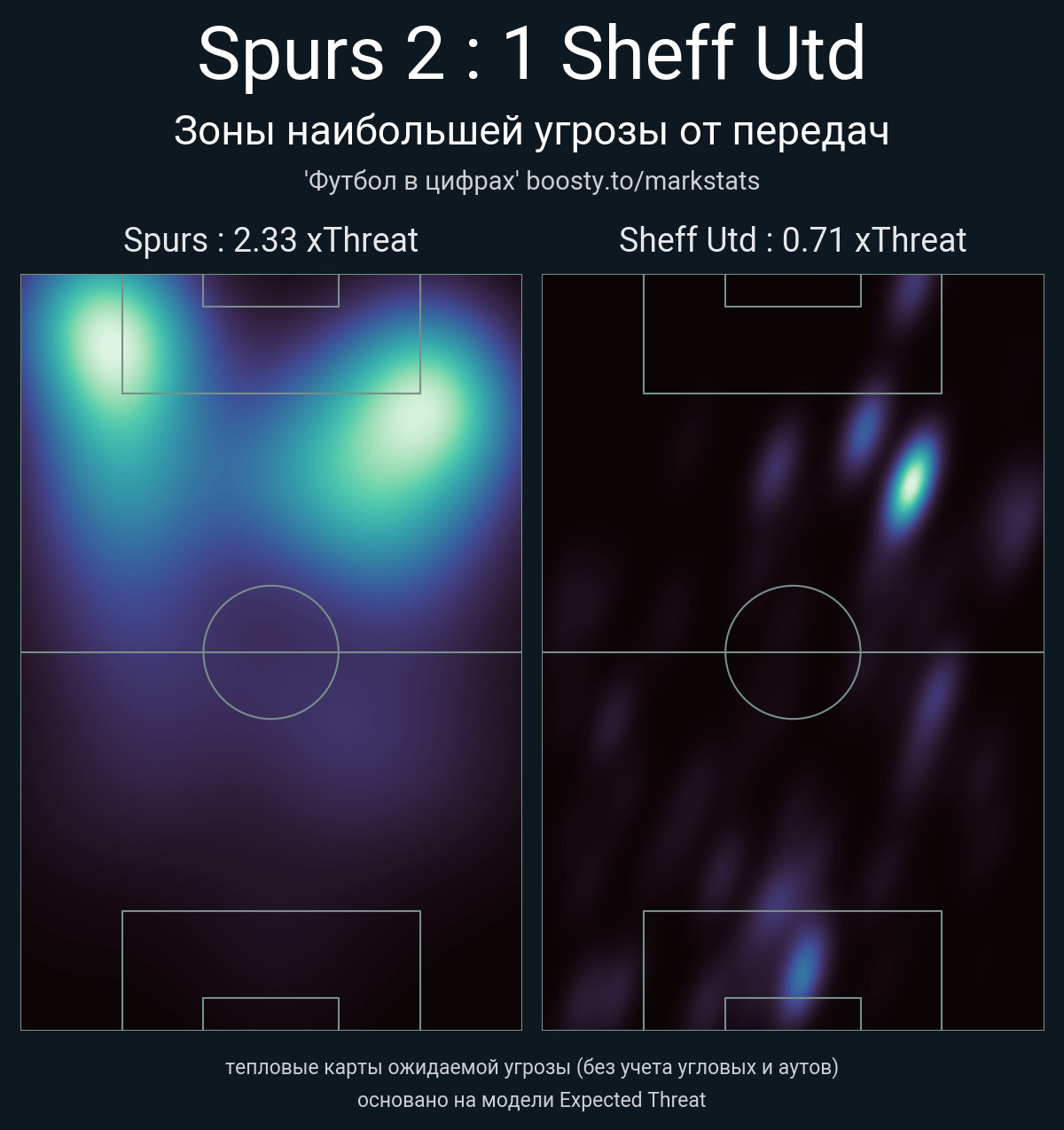 xThreat без учета угловых: 2.33 - 0.71