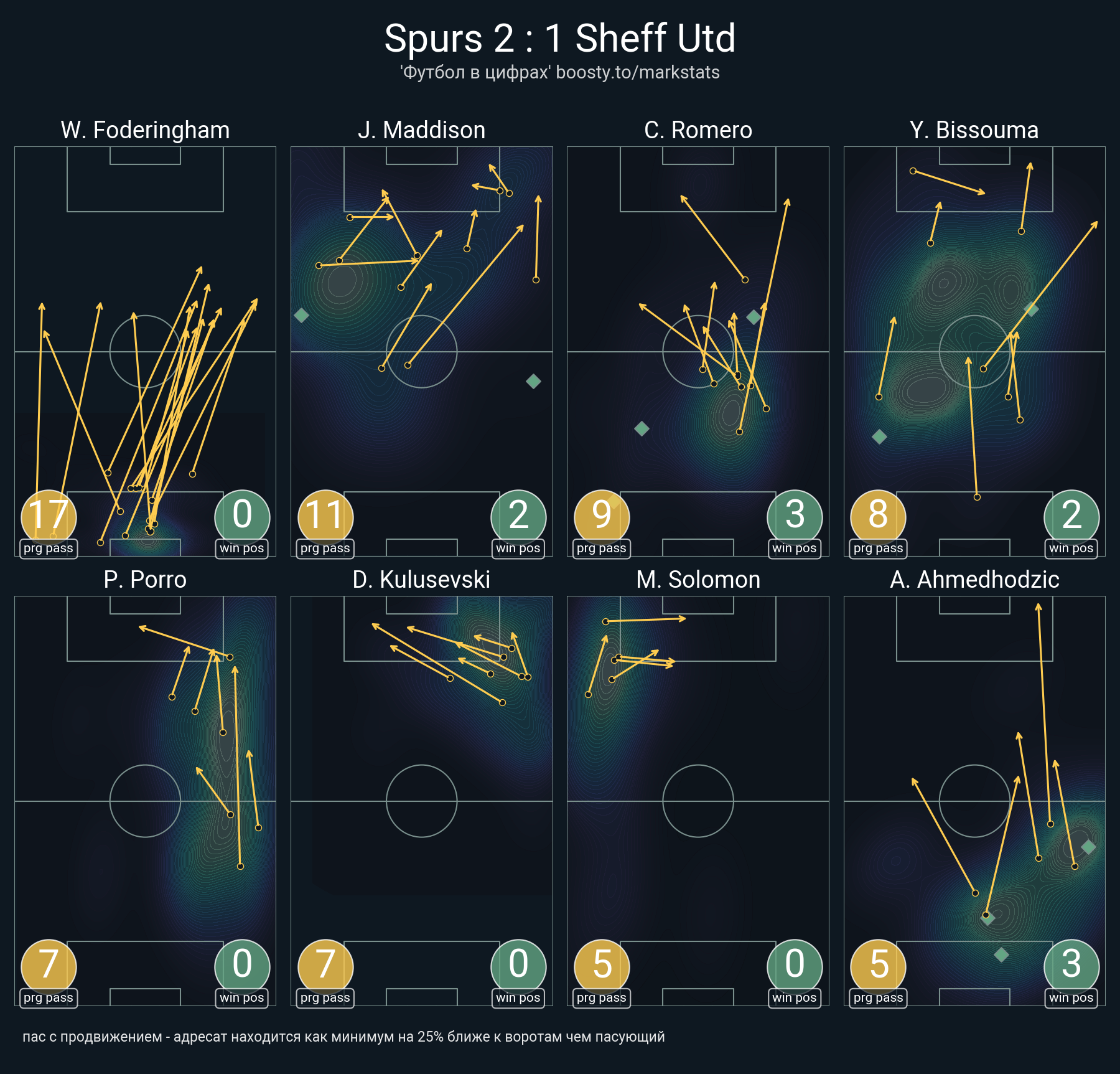 25 успешных передач из 31 попыток (4 под удар, 5 с продвижением, 17 на трети соперника)