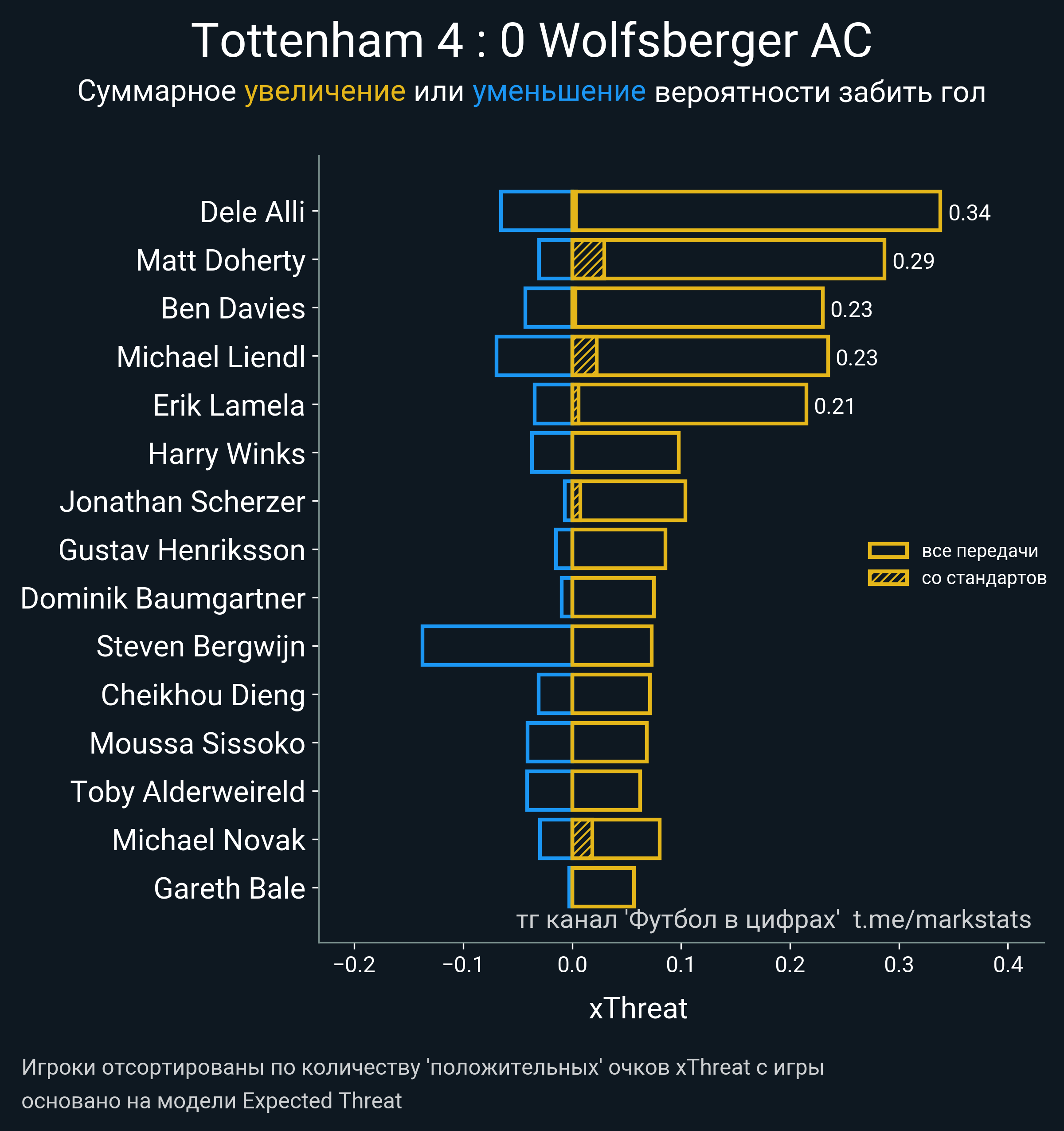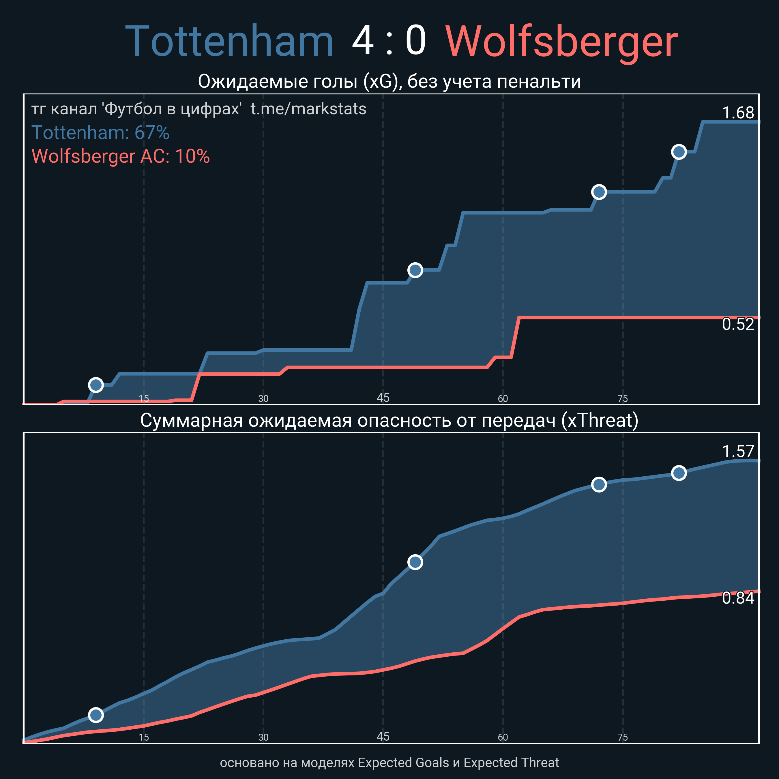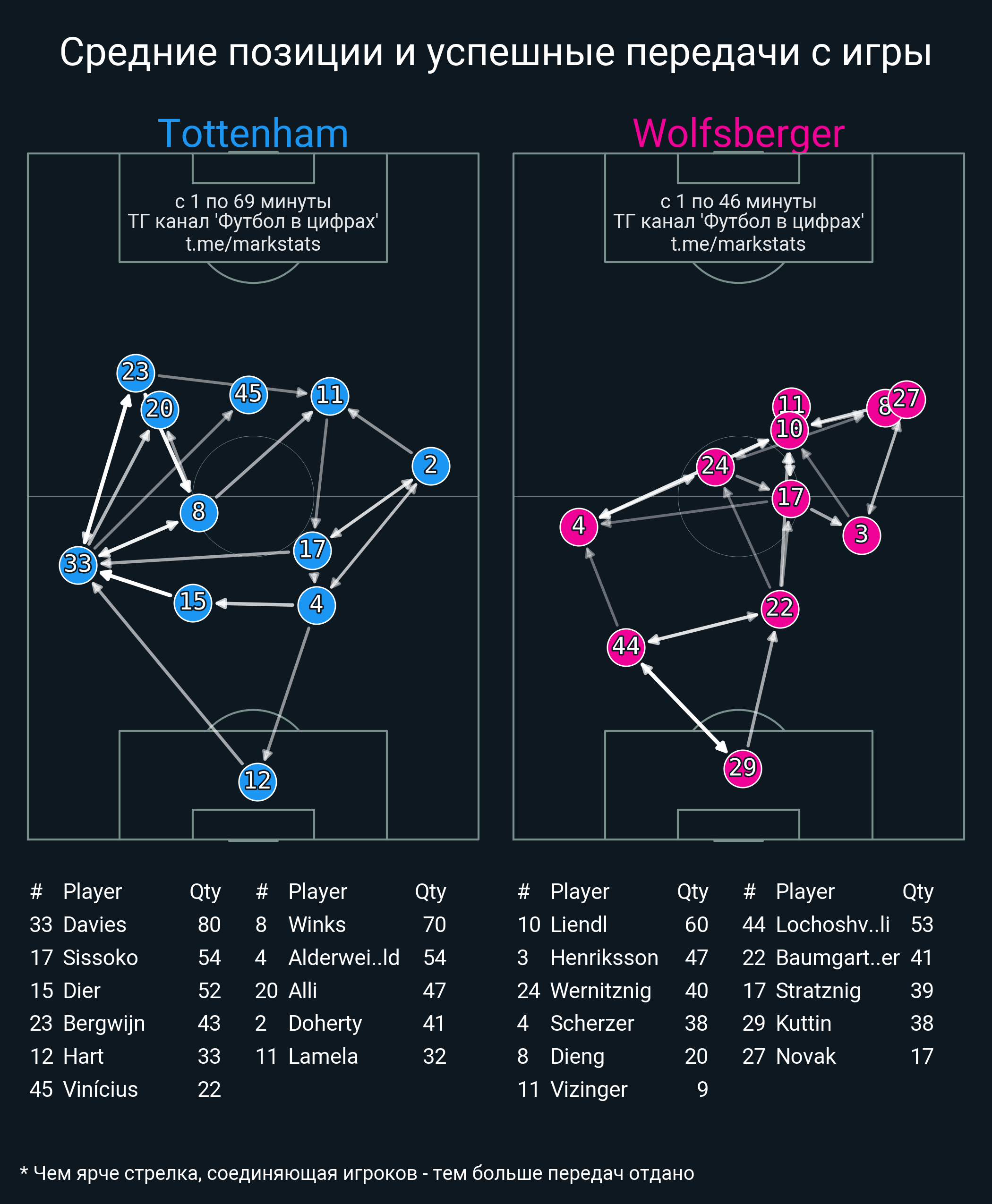 Футбол в цифрахСтатистика матча Tottenham - Wolfsberger AC