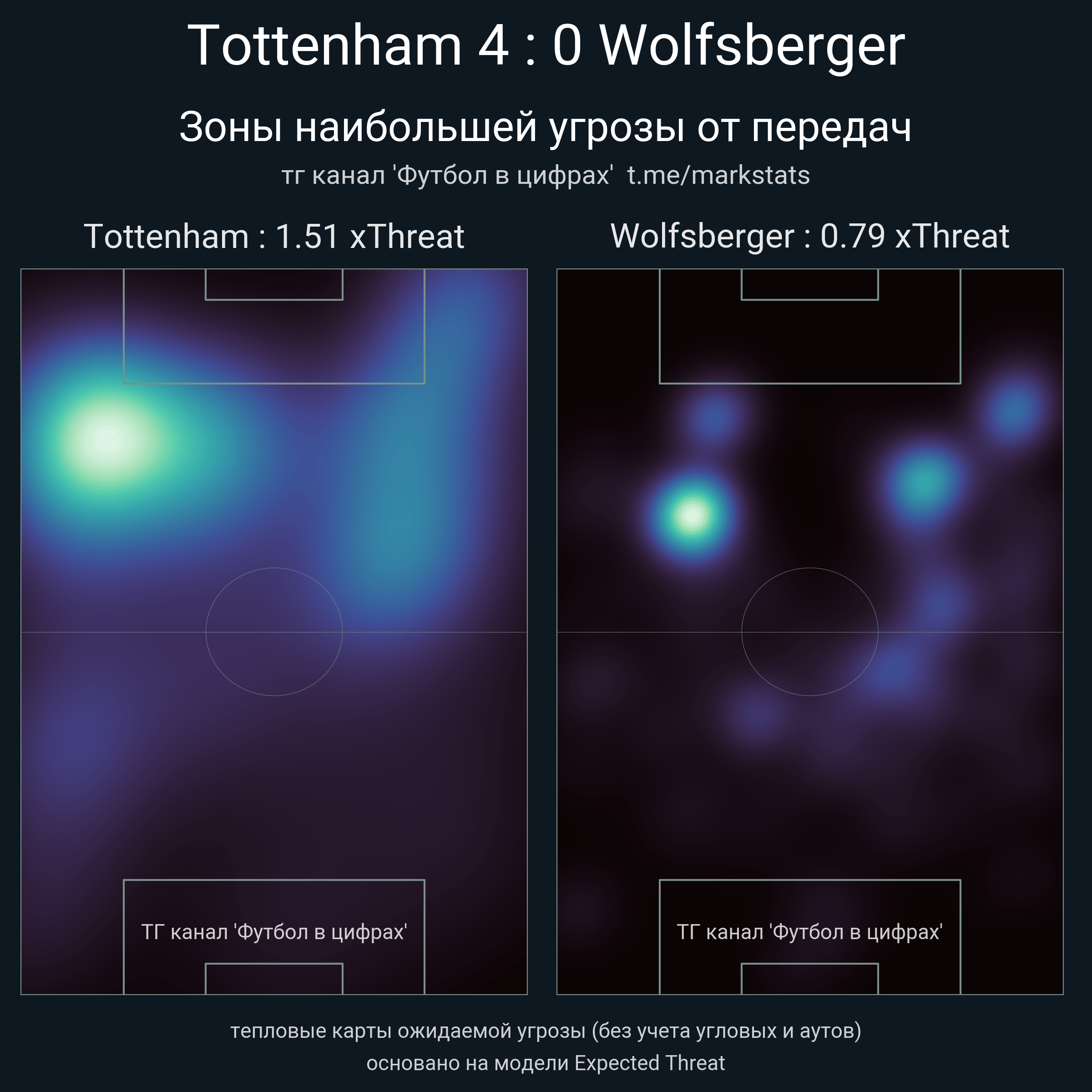 ▪ xThreat без учета угловых: 1.51 - 0.79
