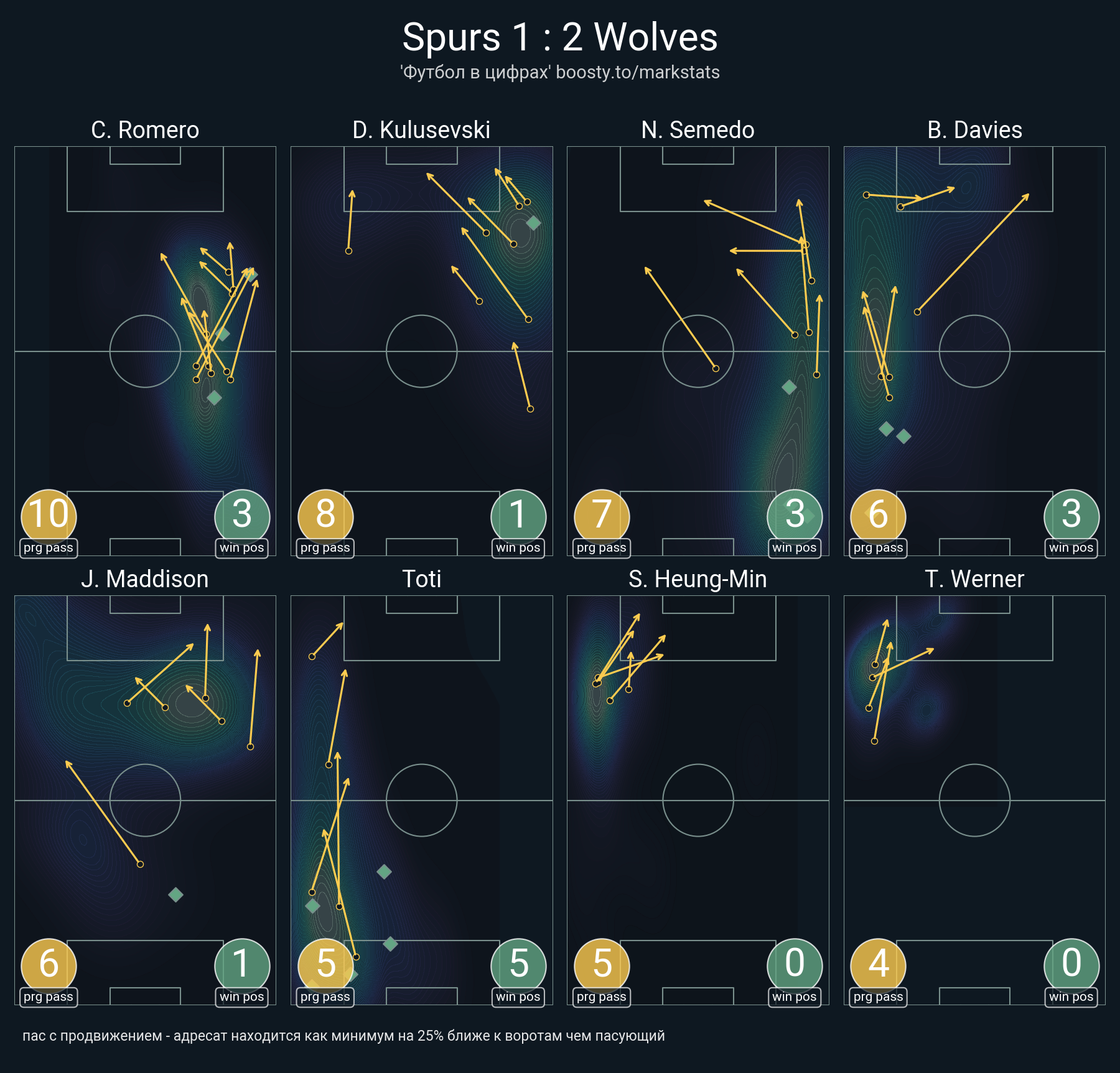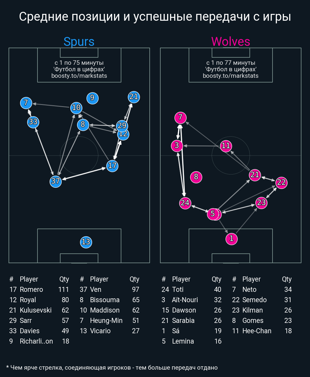 47 успешных передач из 64 попыток (1 под удар, 8 с продвижением, 25 на трети соперника)