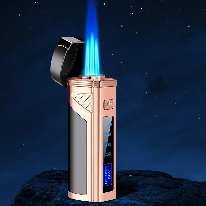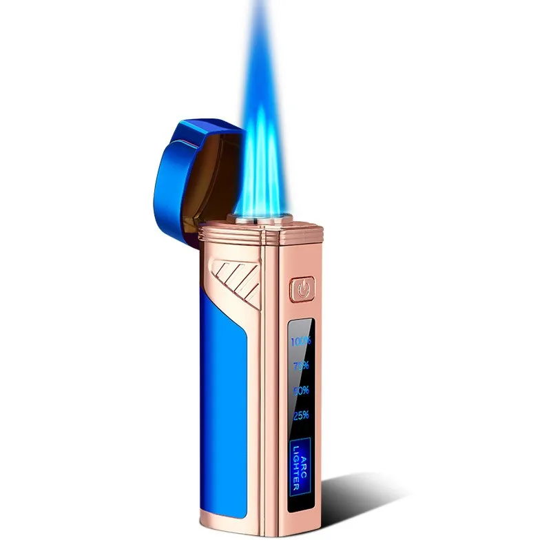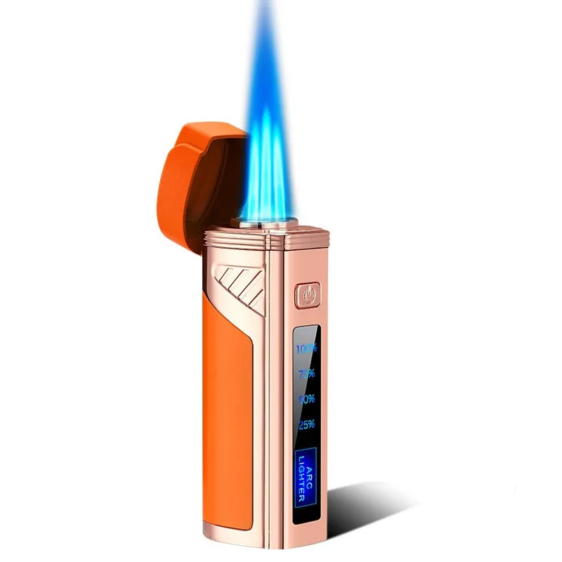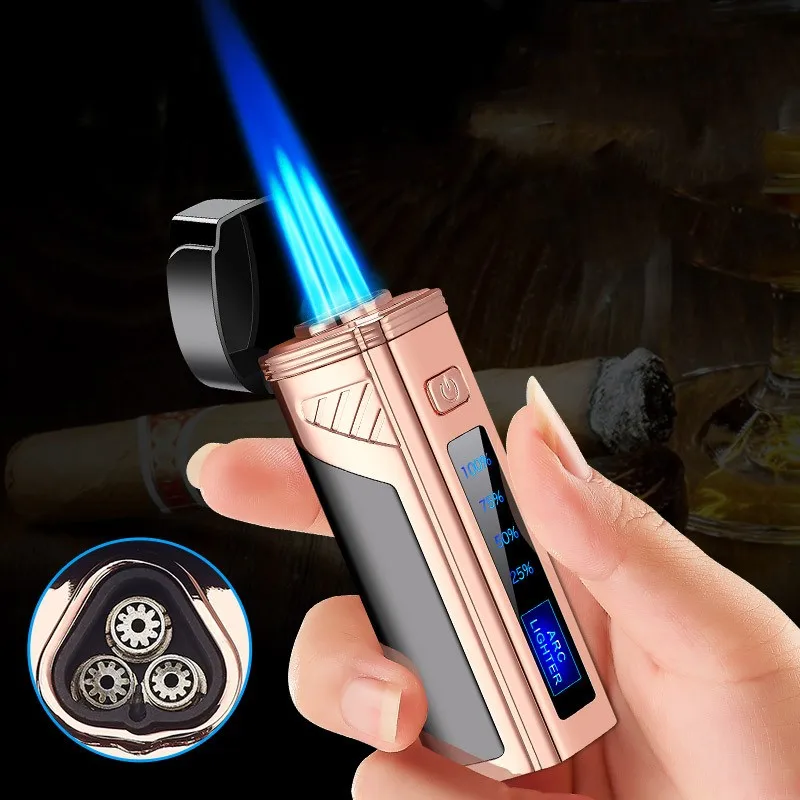 Touch Induction USB Three Straight Flush Windproof Gas-Electric Lighter Multifunction with Cigar Cutter LED Display Power Gadget - Купить с бесплатной доставкой