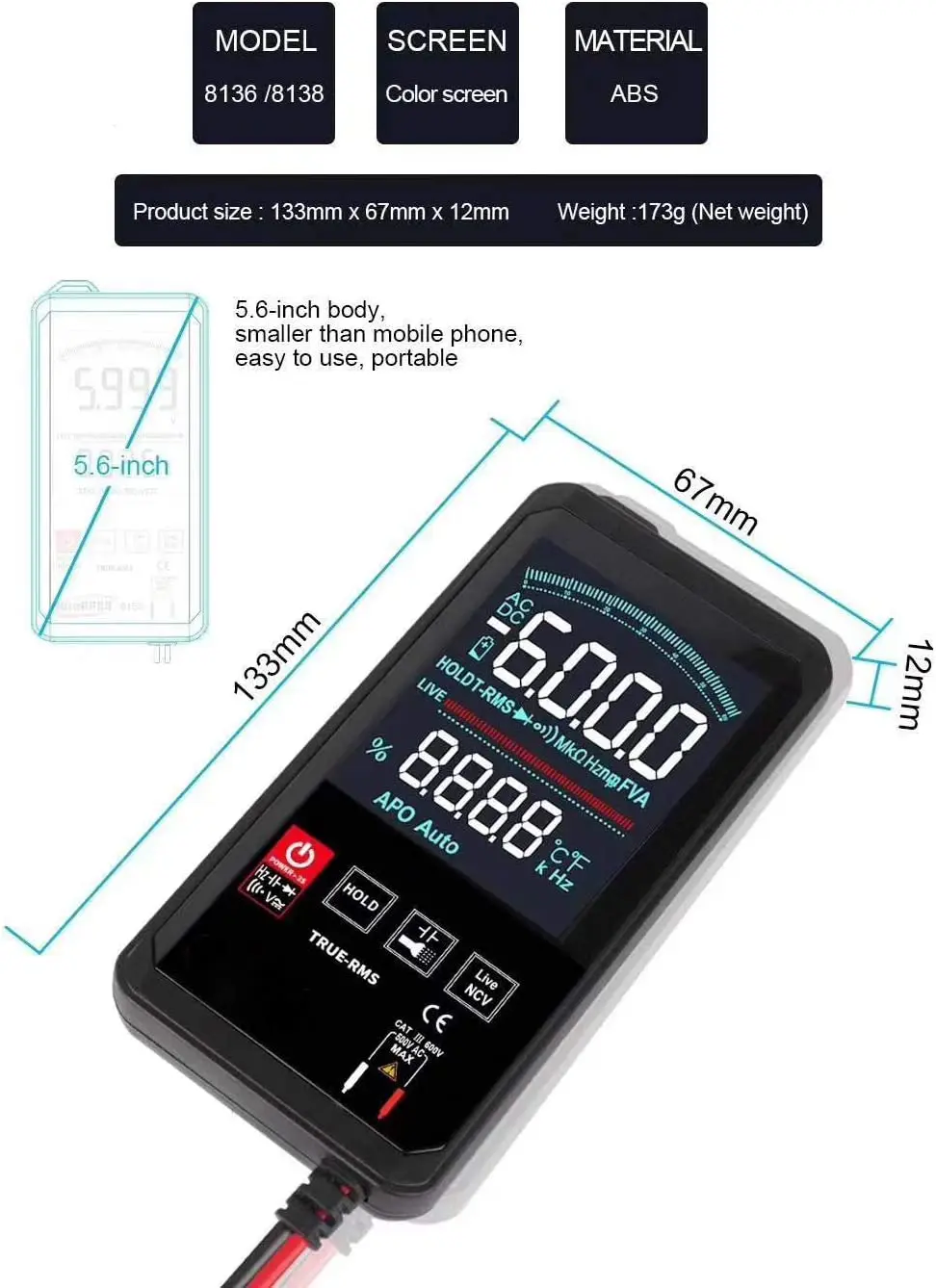 Touch Screen Intelligent Digital Multimeter Auto 6000 Counts TRMS DC AC Voltage Current Frequency Temp Resistance Capacitance Te - Купить с бесплатной доставкой