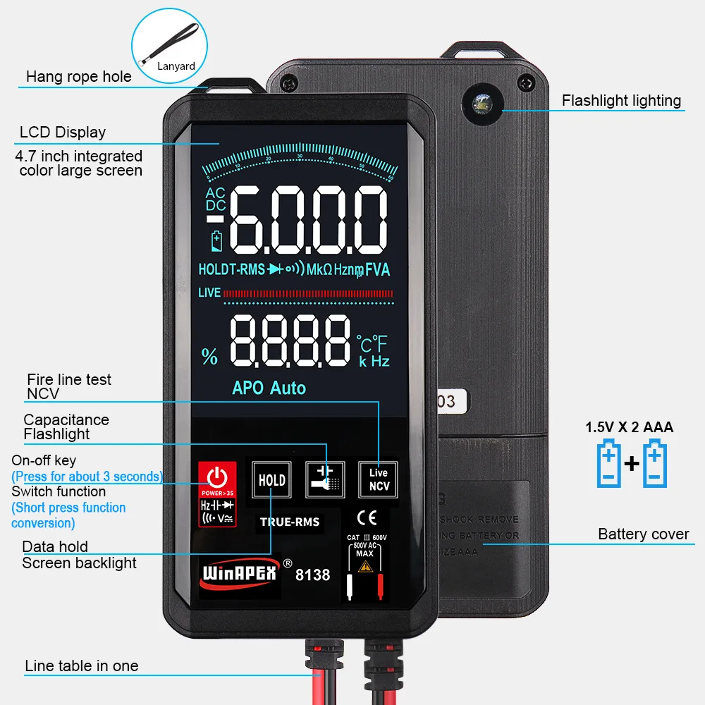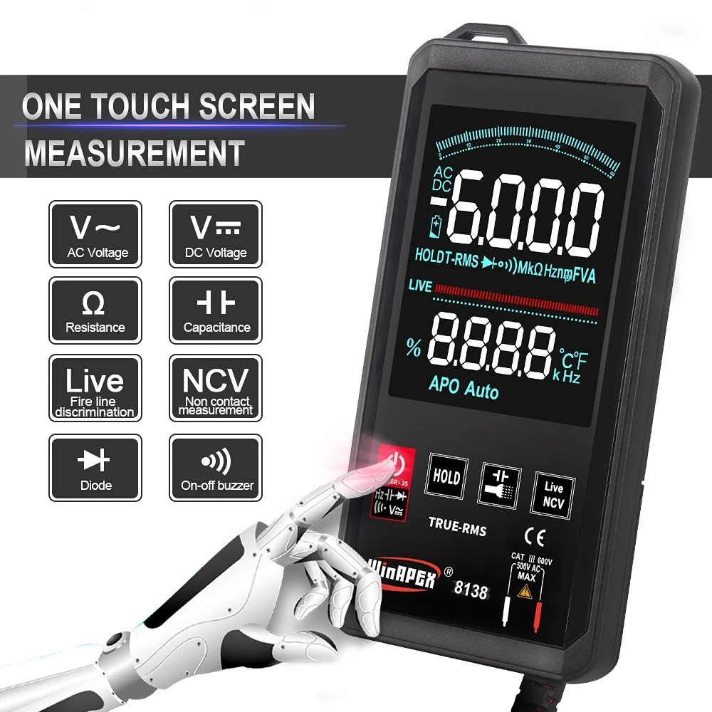 AjXnIqJdKЗдесь вы сможете купить Touch Screen Intelligent Digital Multimeter Auto 6000 Counts TRMS DC AC Voltage Current Frequency Temp Resistance Capacitance Te с бесплатной доставкой до вашего почтового отделения.