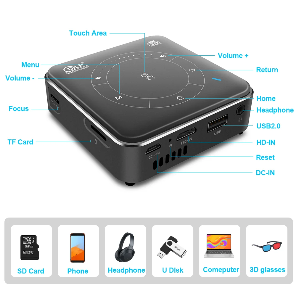 itKLCQinHere you can buy Touyinger D021 Android 9.0 Support 4K Mini Projector,3D HD Portable Micro WIFI Bluetooth DLP Mobile LED Projector with Battery with free delivery to your post office.