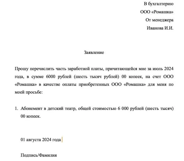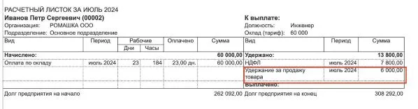 Товар в счет зарплаты