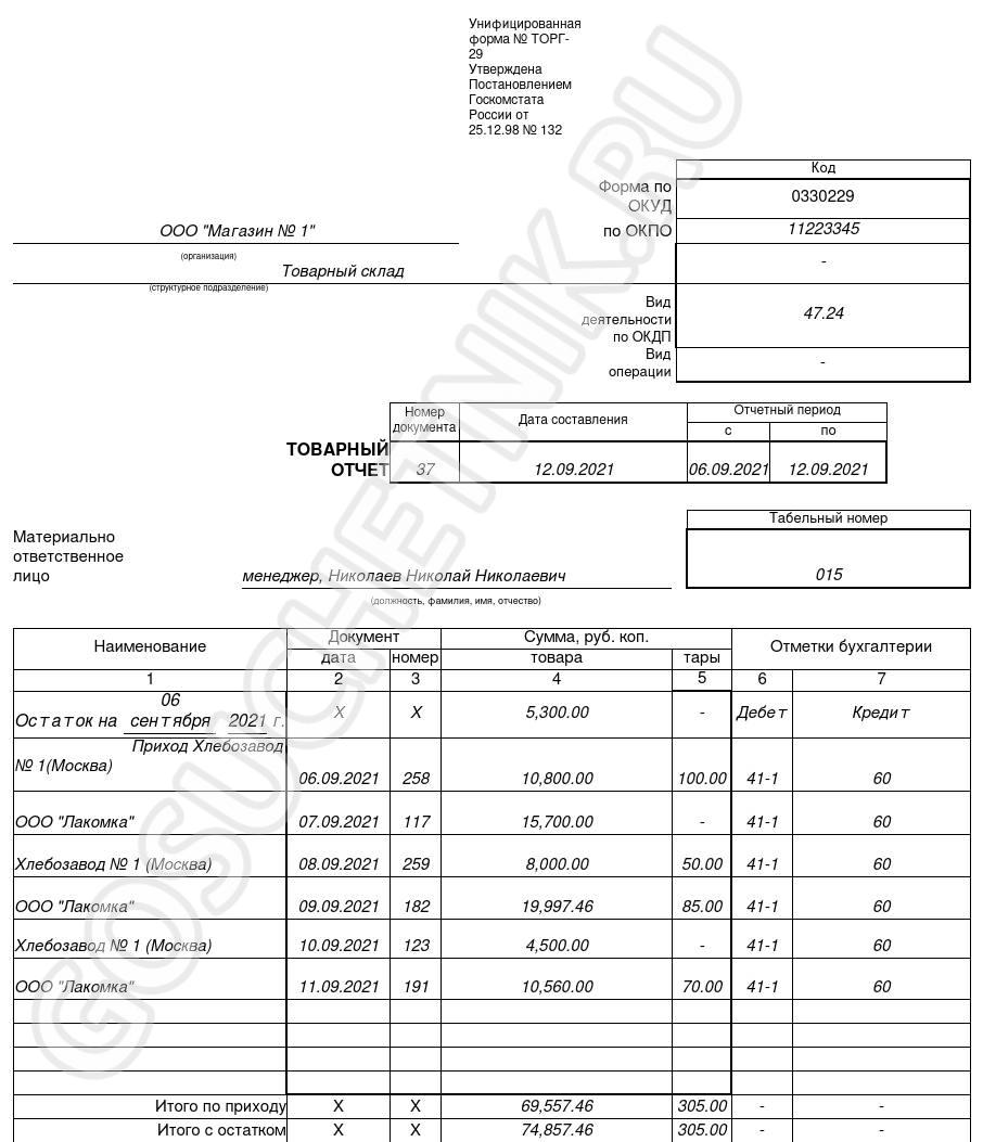 Товарно денежный отчет бланк