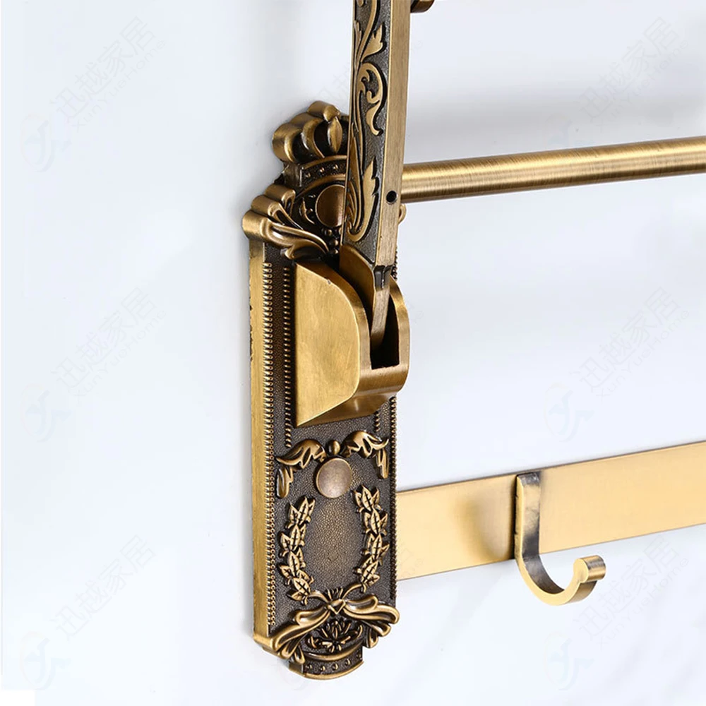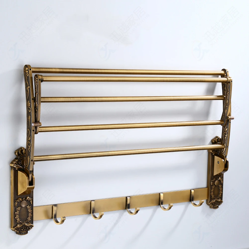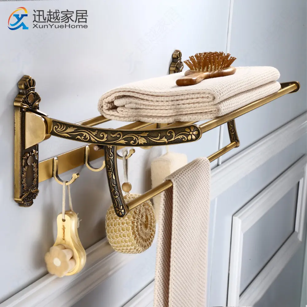 lDYTdSMdЗдесь вы сможете купить Towel Rack Foldable Movable Bath Holder Antique Gold Aluminum Storage Double Bar Active Cloth Shelf With Hook Bathroom Accessory с бесплатной доставкой до вашего почтового отделения.