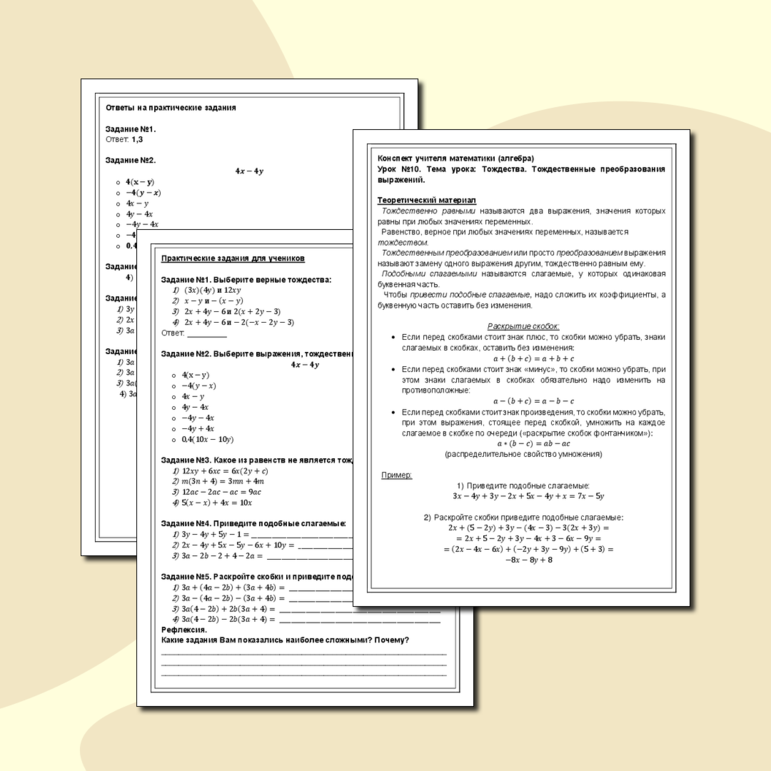 Тождества 7 класс алгебра конспект урока
