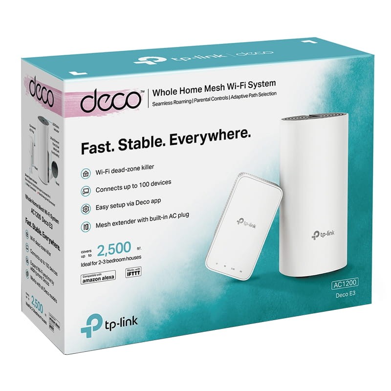 TP-Link Mesh Technology chooses the best route and band for your data, guaranteeing a fast connection no matter where you are in your home . Self-Healing . If one Deco has an issue, the system will . automatically reroute data via the other . Decos to make sure you stay online .