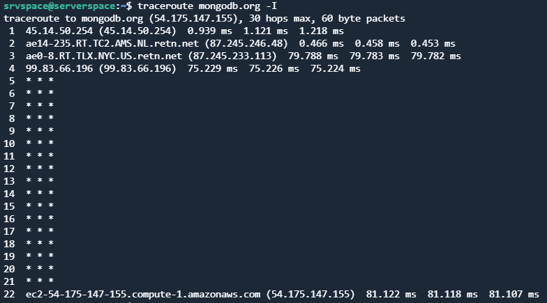 traceroute mongodb.org -I