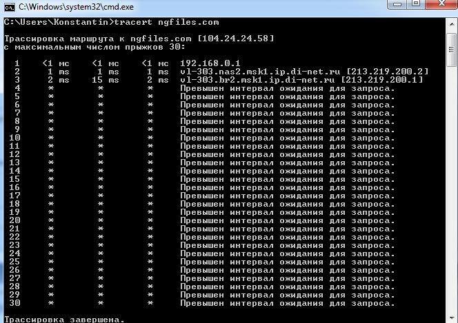 Tracert превышен интервал ожидания