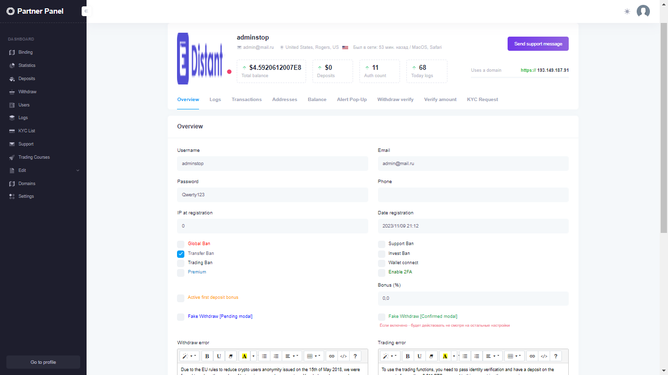 • Fake withdraw Pending (in the user transaction it will be written that the withdrawal is pending)