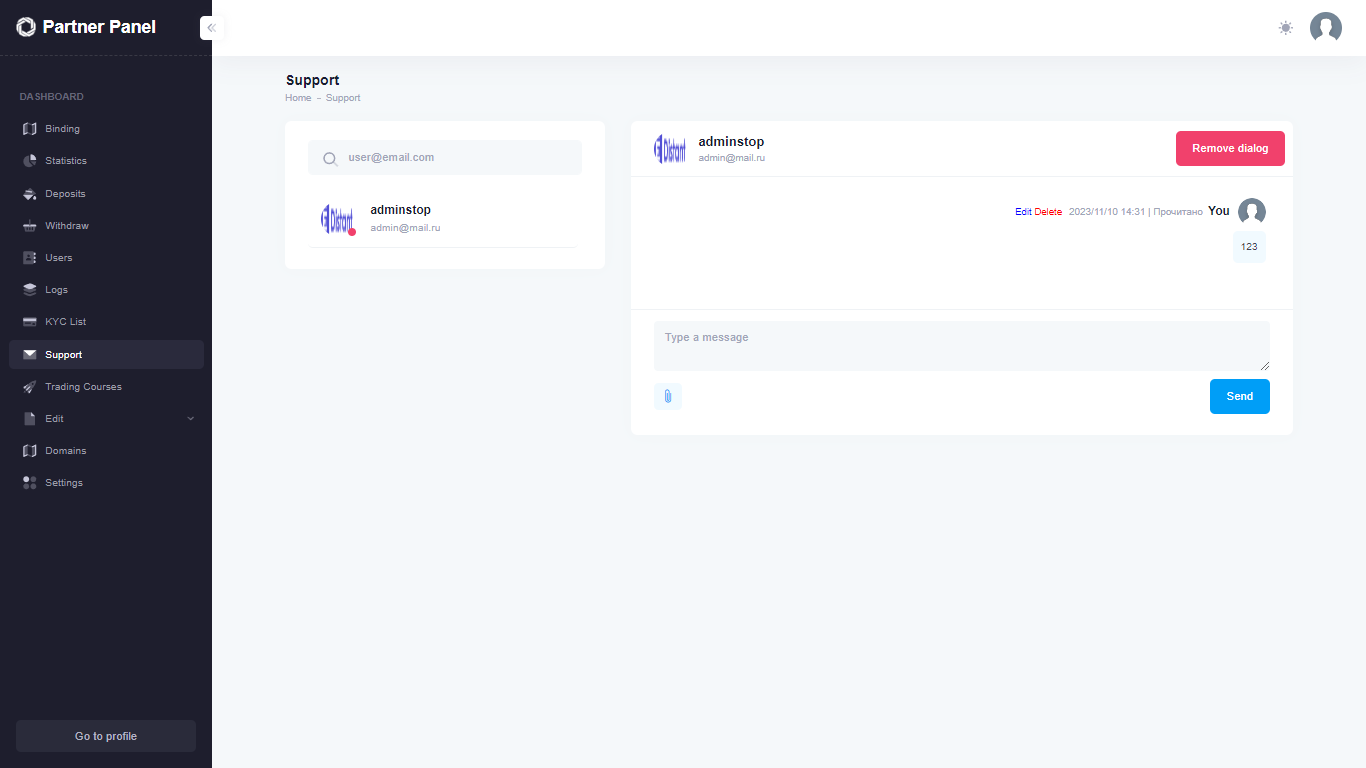 • In support you can change/delete messages
