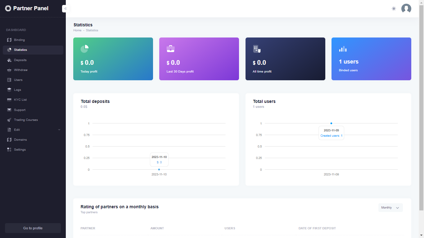 • When he makes a deposit, you receive a notification (or you see it in the panel)