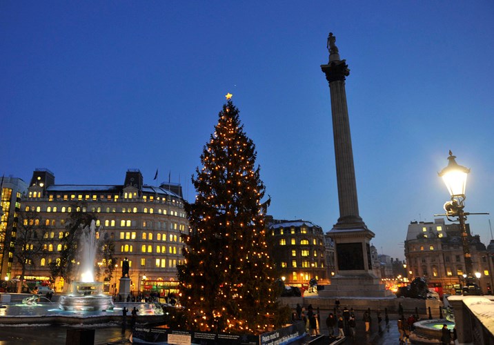 Trafalgar square christmas tree in london