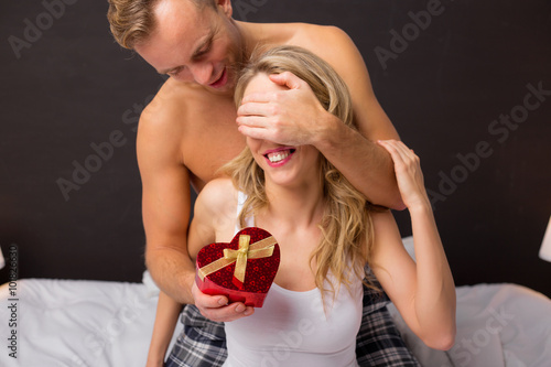 После того, как уверенный в себе бородатый парень подарил девушке подарок , он смог трахнуть ее в кровати.