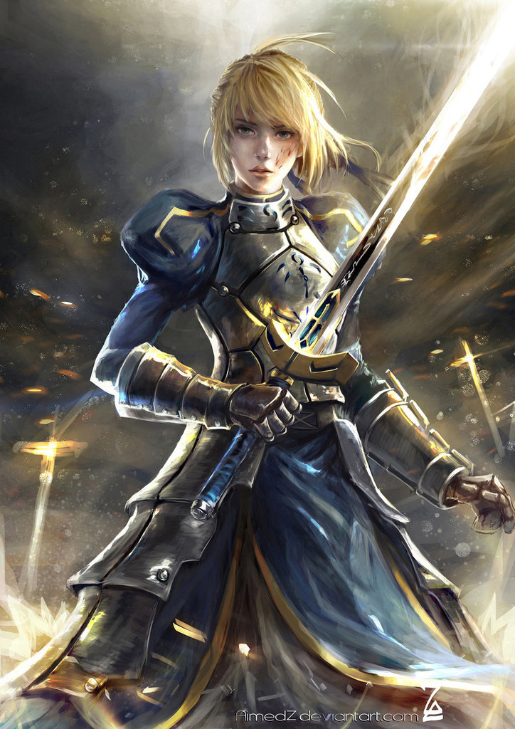 Better known as Arthur Pendragon/King Arthur . In history, he/she is a different figure that may not have been known to others as possibly being the legendary King Arthur himself . Accompanied with her inversion, the holy sword Excalibur is also dyed in the attribute of evil, turning into a jet black sword .